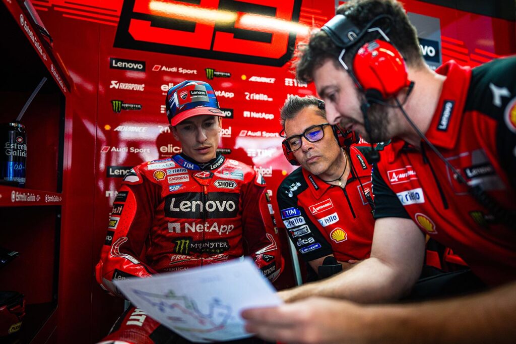 Y en cierta medida lo fue, para él, porque para ganar tiempo cada vez más cerca de los bordes en la serie de curvas que van de la 3 a la 9, con esa sucesión que lanza a los pilotos a la izquierda, derecha, izquierda, derecha, izquierda, derecha, izquierda en menos de veinte segundos. En la vuelta 9, cuando Pecco era su escolta (pero a más de 2,2 segundos), Marc forzó los límites y por milímetros, hizo: izquierda, derecha y se fue al piso.