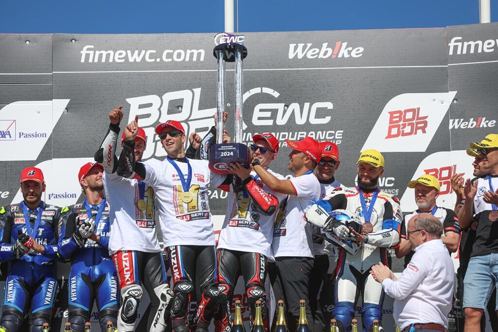 El equipo Yoshimura SERT Motul (#12) consiguió descontar la diferencia sobre sus rivales del YART Yamaha (#1) y, tras adjudicarse la edición 2024 del Bol d’ Or se coronó campeón de la presente temporada del Mundial de Resistencia.
