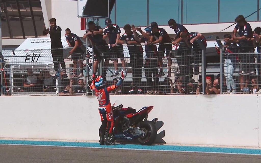 Luego de mantenerse bastante tiempo en posiciones de podio, la CBR1000RR-R se quedó en pista, fue trasladada a boxes para realizar una reparación y volvió a salir (con ‘Tati’ Mercado como piloto) para completar la carrera y recibir la bandera a cuadros.