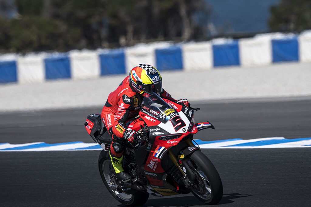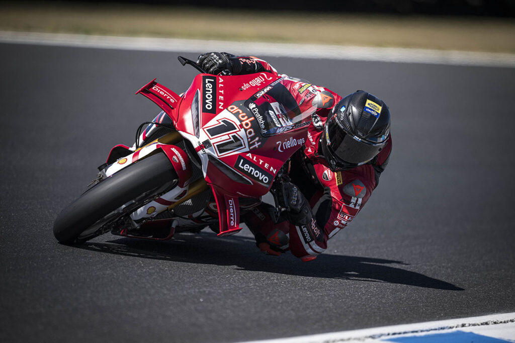 El sábado, la adaptación del italiano con el trazado de 4.445 metros de extensión quedó confirmada al lograr su décima Pole Position desde que está en la divisional (todas con Ducati) y brindó una gran satisfacción al equipo al imponerse de punta a punta en la Race1 disputada con un recorrido de 22 vueltas.