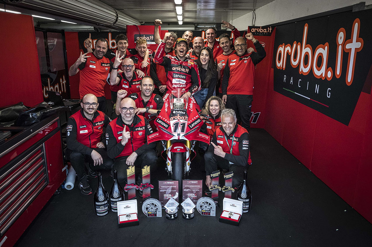 El sábado, la adaptación del italiano con el trazado de 4.445 metros de extensión quedó confirmada al lograr su décima Pole Position desde que está en la divisional (todas con Ducati) y brindó una gran satisfacción al equipo al imponerse de punta a punta en la Race1 disputada con un recorrido de 22 vueltas.