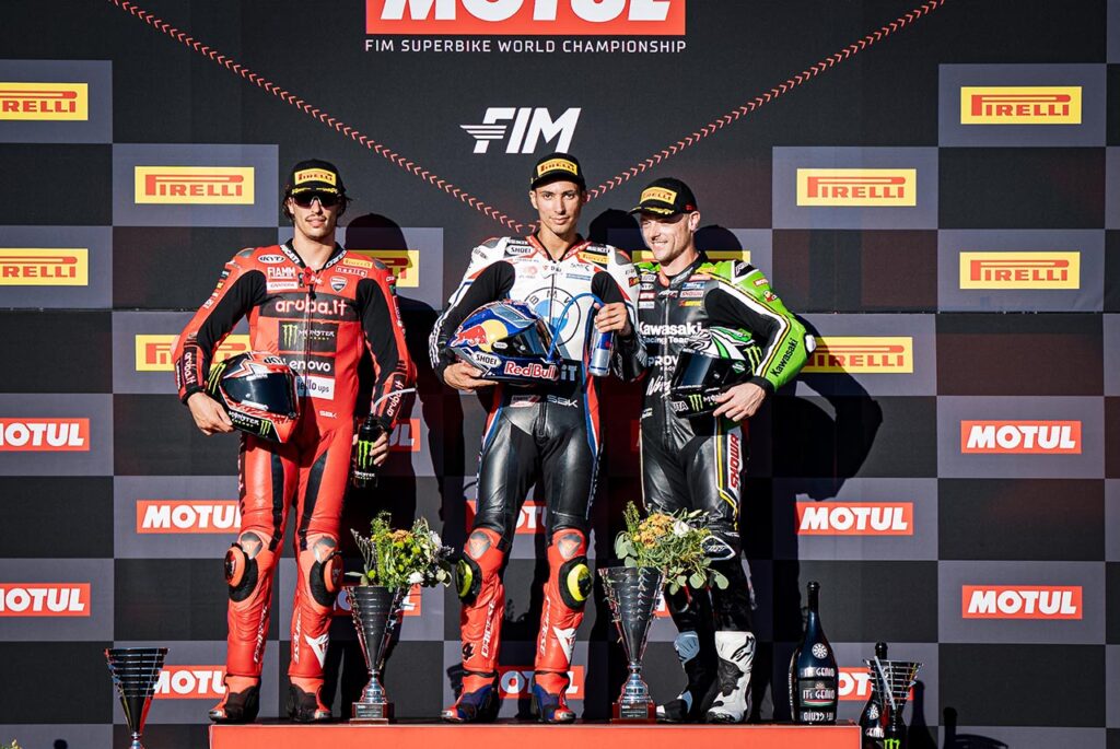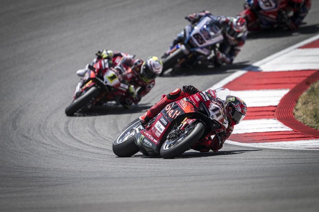 No hubo con qué darle al turco de BMW en Portugal. Ganó la manga del sábado capitalizando la suerte dispar de sus rivales. En especial, la mala fortuna en cada largada de Álvaro Bautista. En esa primera experiencia al atardecer, el campeón de Ducati partió mal y quedó en el puesto 13 del pelotón. Desde allí, comenzó una recuperación increíble que lo dejó segundo, a los escapes de Razgatlioglu pero ya sin chances de alcanzar (y superar) a la BMW M 1000 RR.