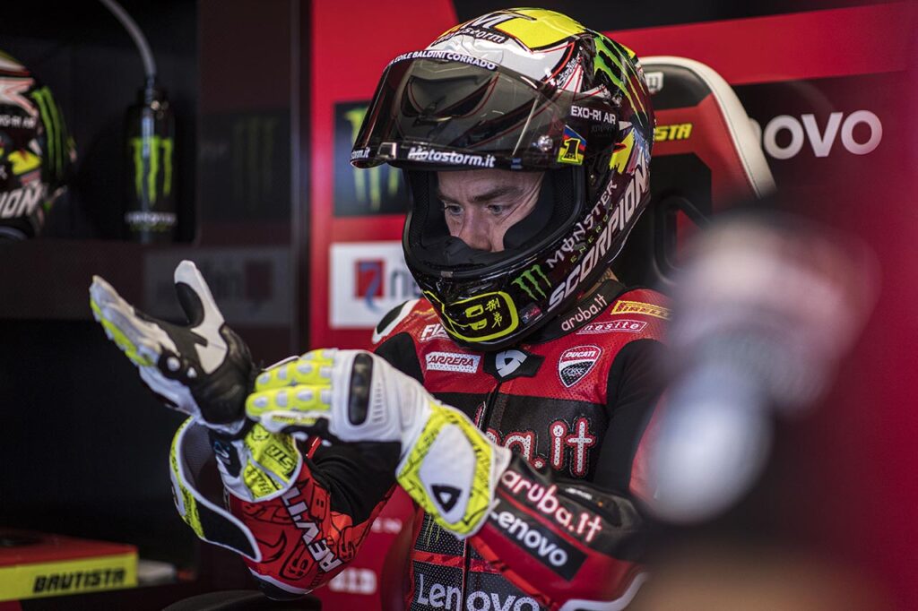 Para Álvaro Bautista (Ducati #1) el fin de semana no fue productivo (pese a su afirmación que tuvo mejor rendimiento mecánico que en Donington). Una penalización en clasificación lo mandó al décimo cajón de la grilla y remontó la Race1 hasta el cuarto lugar. Luchaba con Nicoló Bulega la posición de escolta de la SuperPole Race cuando se tocaron y uno se fue de largo y el otro se cayó; pero lo peor llegó en la Race2 con el caótico frenaje en la curva 1, el toque con Petrucci y el desparramo en la leca.